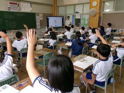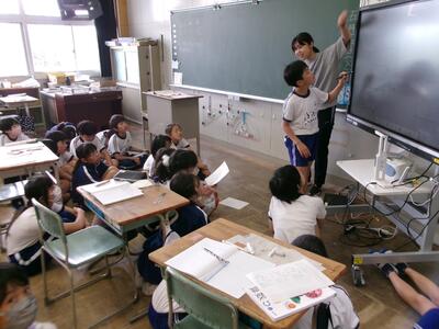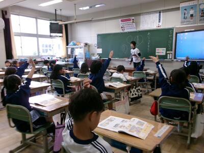 1年2組は算数。「チョウとチューリップではどっちが多い?」