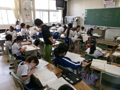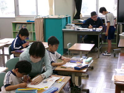 2年生は、どちらも担任に長~い行列が! 国語や算数のドリルを終えると、「まだかな~」とソワソワしています。