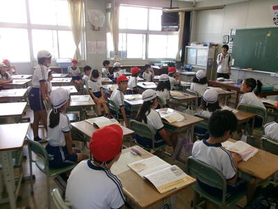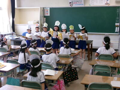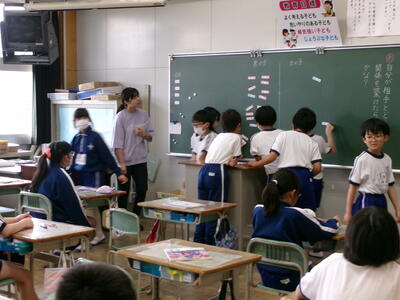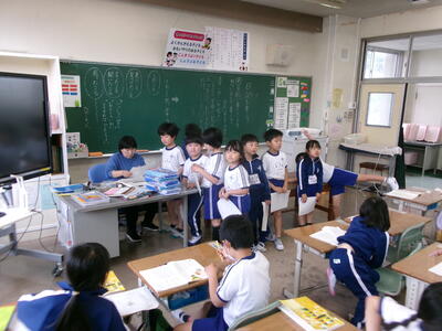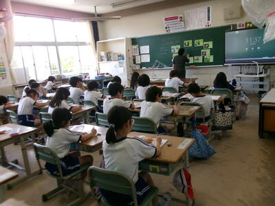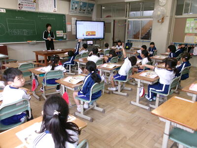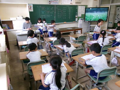 1年1組では、学校探検で分かったことを発表していました。南校舎の西にあったのは・・・地球!?