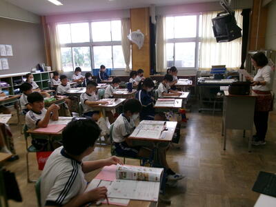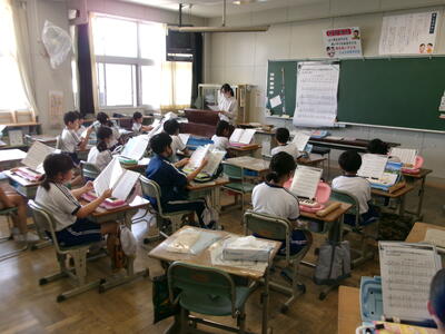 4年2組は音楽。新しく学習するの曲の確認をしています。