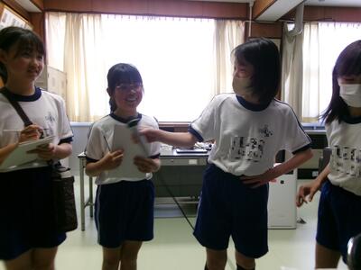 大休憩の校長室を放送委員4名が訪ねてきました。先生紹介のインタビューです。
