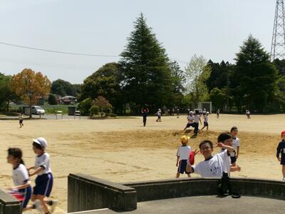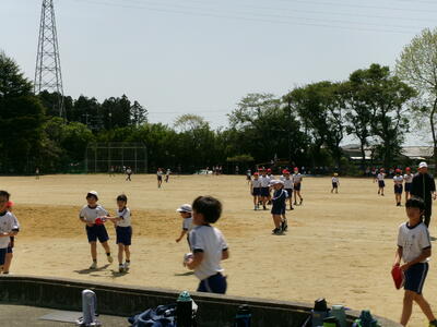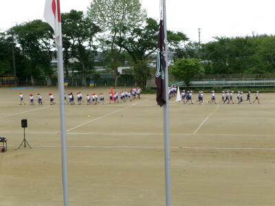 外は小雨が降ったりやんだり・・・合間を見て運動会の練習を行っています。