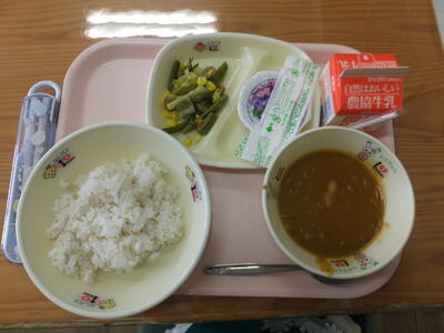 今日は子どもたちが大好きなカレーだったので、食が進む様子に、先生方も笑顔でした。