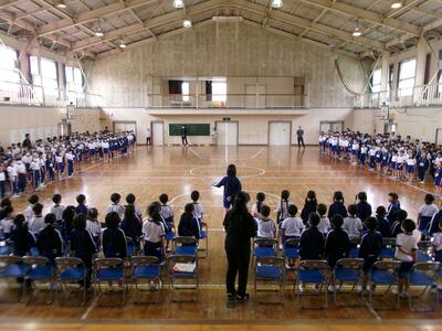 5年生からは〇✕クイズ。全校生で挑戦です。