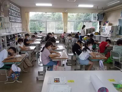 2022年8月25日 10時23分今日から、2学期がスタートし、各学級では、夏休みの宿題を提出したり、夏休みの思い出を発表したり、2学期のめあてを決めたりしていました。
