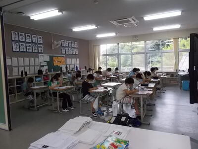 今日から、2学期がスタートし、各学級では、夏休みの宿題を提出したり、夏休みの思い出を発表したり、2学期のめあてを決めたりしていました。