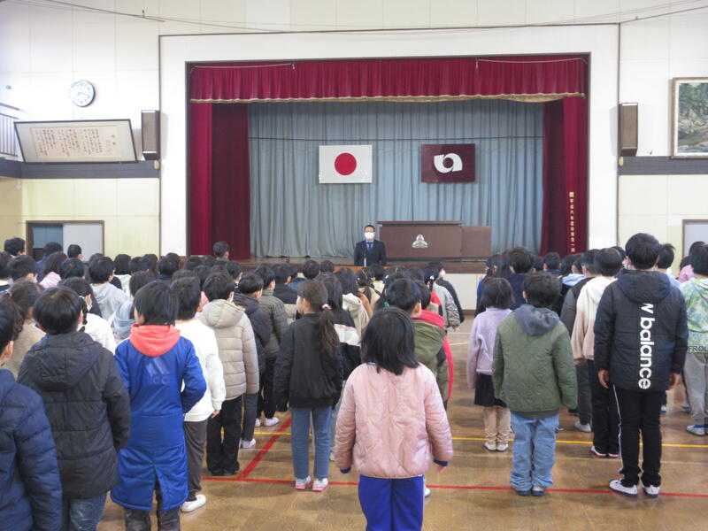 終業式では、教頭先生から冬休み中に気をつけてほしい2つのキーワードのお話をいただきました。