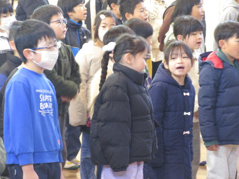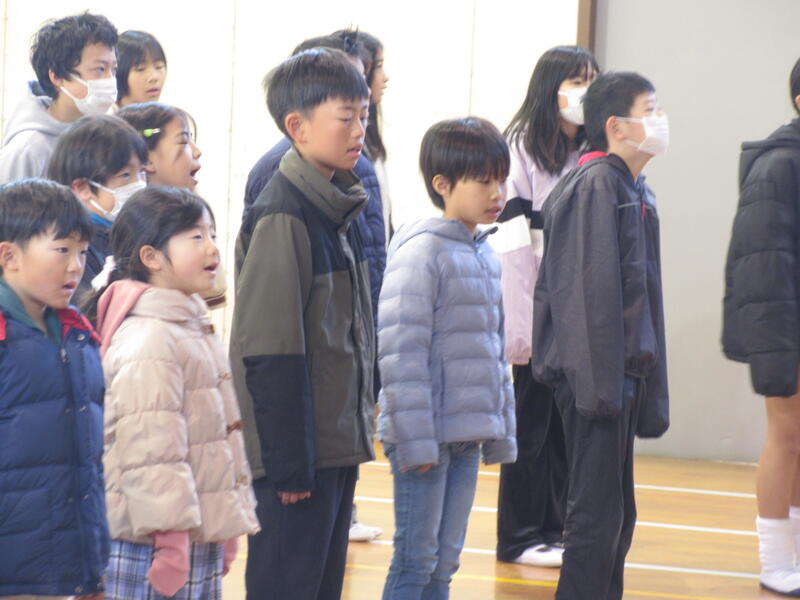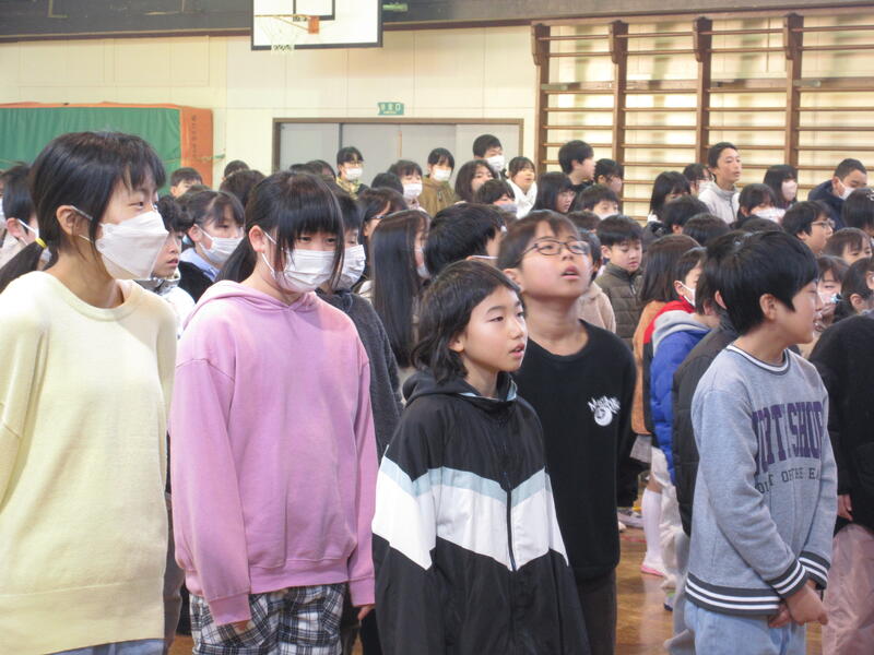 全校児童で校歌斉唱です。元気に歌うことができました。