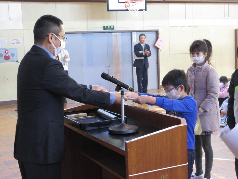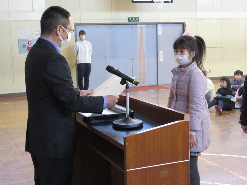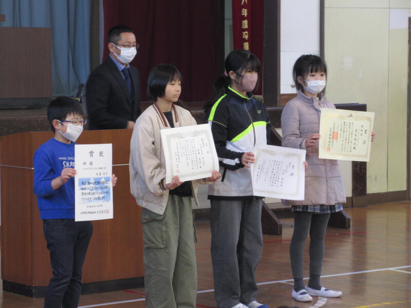 優秀賞(本校では7名が選ばれました6年生が代表で表彰を受けました。)