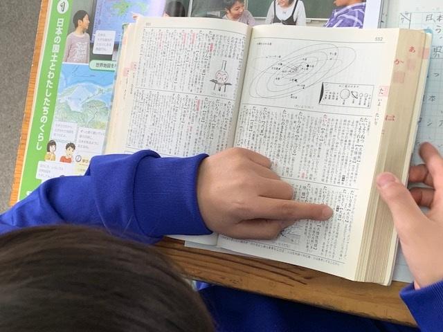 5年生は社会科の時間ですが国語辞典を使っていました。何を調べたのでしょうか。