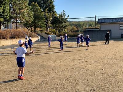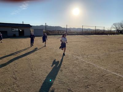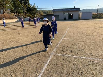 それから、着替えを済ませて1番に外へ出てきたのは1年生でした。朝はゆっくり走ってくださいね。