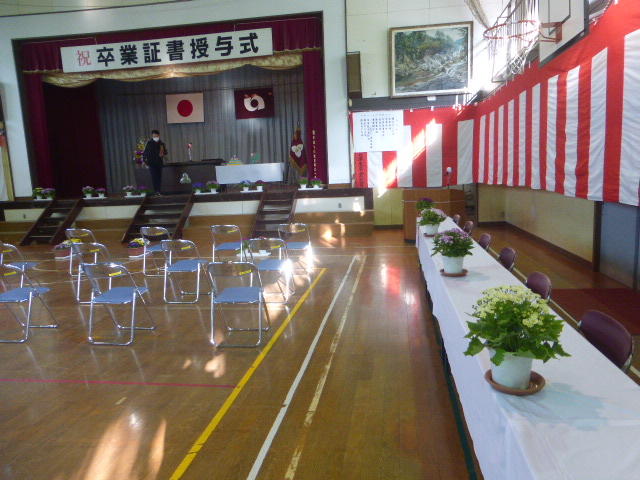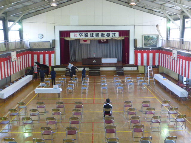 さて、3月23日(月)、いよいよ令和元年度の卒業証書授与式です。本日、全職員で会場等の準備および最終確認をいたしました。卒業生の皆さんとは、3月3日(火)以来の再会となります。式の練習はほとんどできませんでしたが、当日は、全職員があたたかい気持ちで思い出の時間を過ごしたいと考えています。