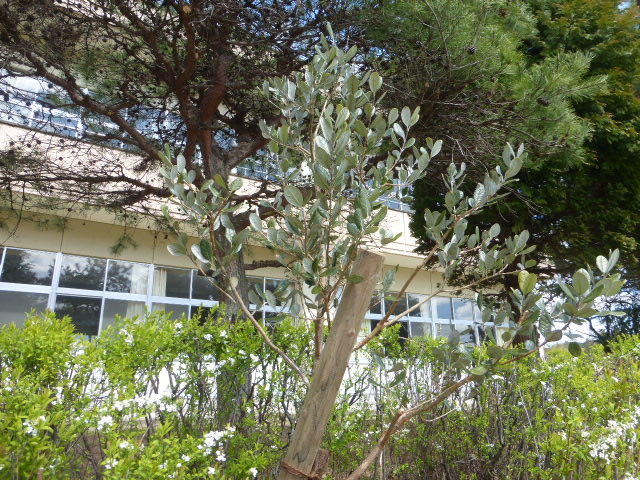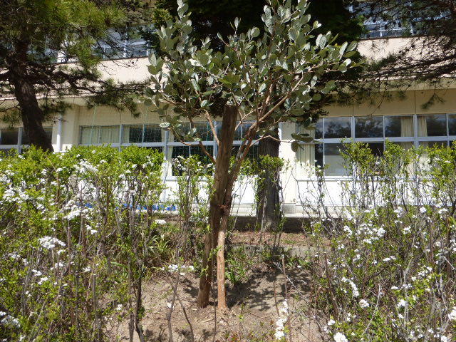 24日(火)の午前中、「ゆうゆうファーム」の「フェイジョア生産農家」である丸山さんが来校されました。「フェイジョア」は幻のフルーツといわれ、大きさはキウイフルーツほどだそうです。とても貴重な樹木を2本植樹していただきました。場所は、日当たりの良い校舎前の掲揚塔近くです。今後、追肥等サポートをしていただきながら、大切に育てていきたいと思います。あまり、馴染みの無いフルーツなので総合的な学習の学習教材として活用し、「調べ学習」を通して学びを深めていければと思っています。