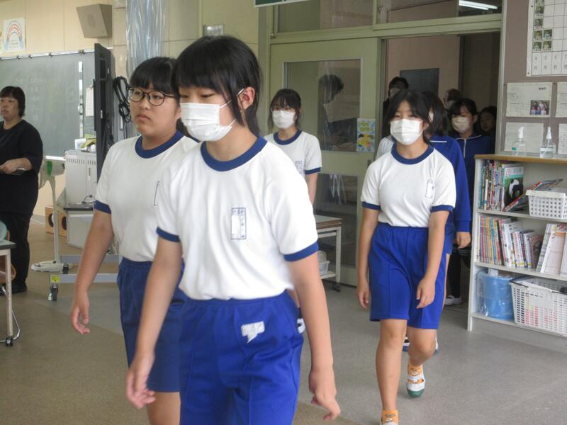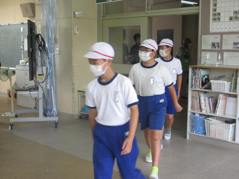土砂崩れが起こると想定される場所から一番離れた場所の校舎東側2階に全校生が避難しました。