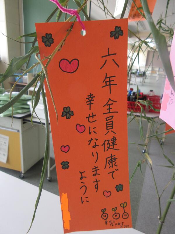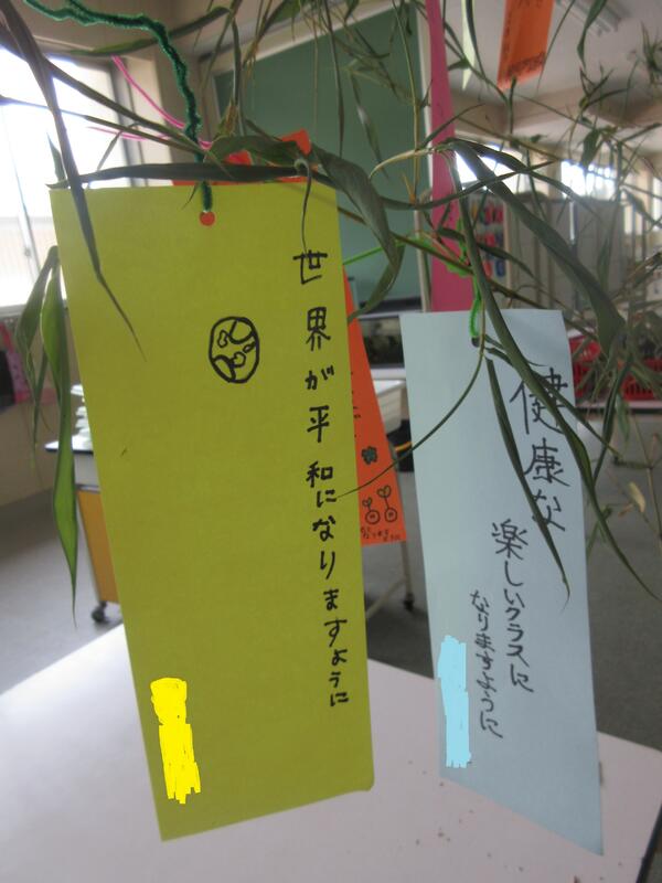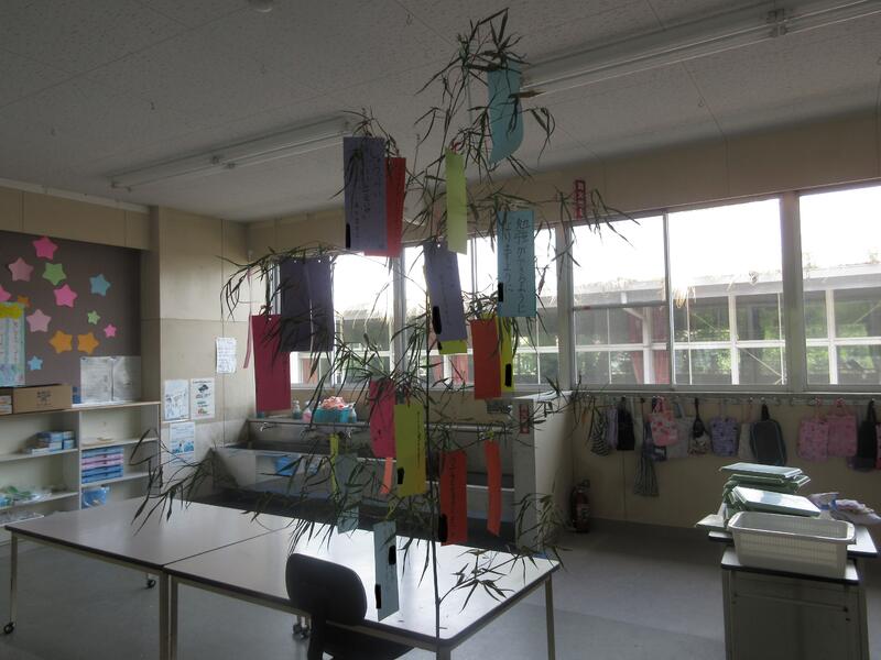 7月4日の七夕集会に向けて、短冊に願い事を書いて飾っています。
