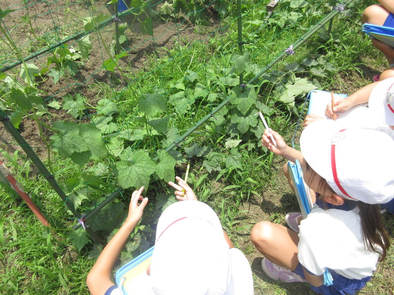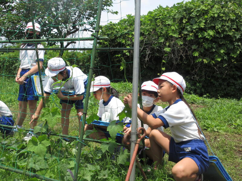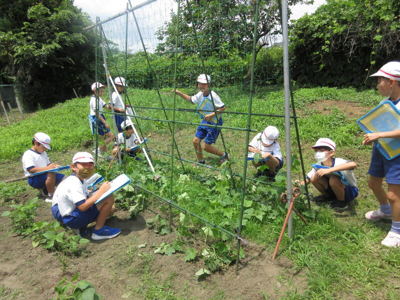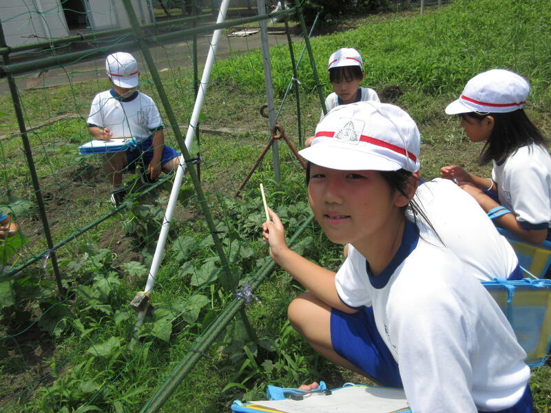 近くに行くと「先生!これが私のヘチマです!」と紹介してくれる児童がたくさんいました。
