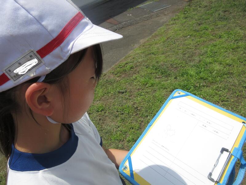 今日も気温が高い1日だったため、なるべく早く終わらせるように、児童全員が協力しながら記録をとっていました。