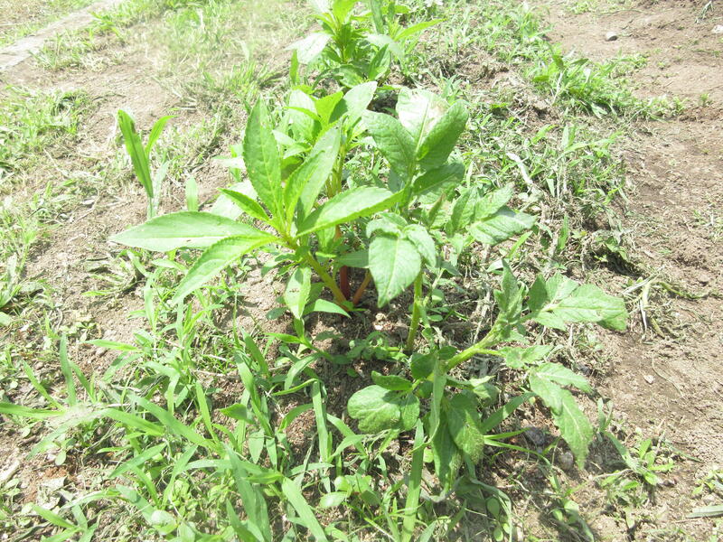 手前がジャガイモで奥側がホウセンカだそうです。ジャガイモは枯れたら掘るとジャガイモができている、と4年生に教えてもらいました。詳しいですね!