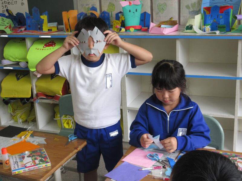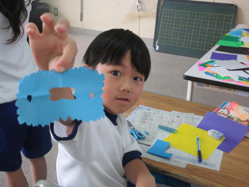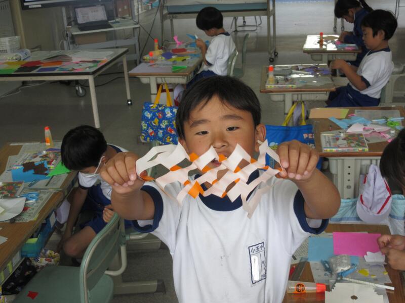 1年生は、ハサミを使って七夕飾りを作っていました。