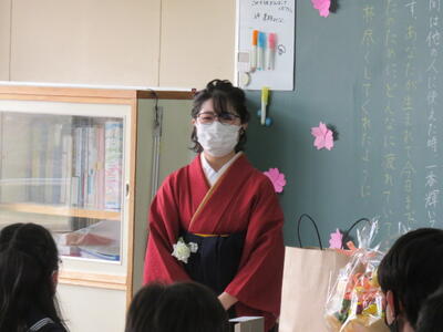 10月から小玉小学校にお世話になり、5ヶ月という短い間でしたが、みなさんと休み時間、大休憩にお話したり、遊んだり、とても楽しい時間でした。本当にありがとうございました。