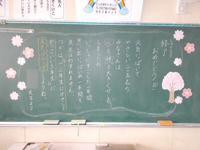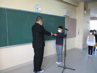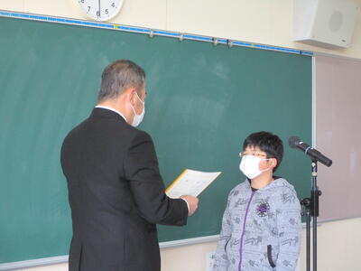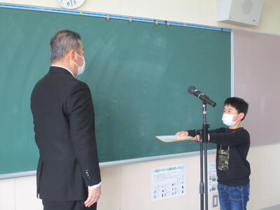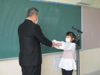 朝8時20分から1年生から5年生が修了証授与式に臨みました。どの学年も式に臨む態度から、この1年間の大きな成長を見取ることができました。春休みは事故にあったり、病気になったりしないように過ごしてくださいね。