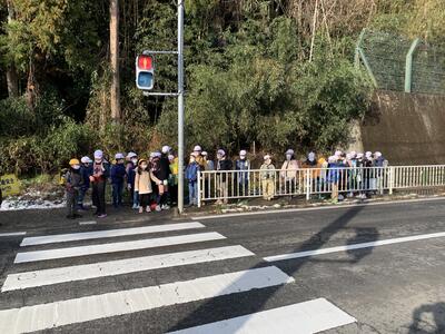 今朝も新しい班長さんが先頭にたって、仲良く並んで登校しました。