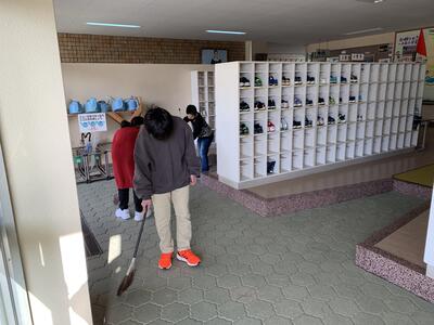 5年生が早くから学校の掃除をしてくれました。ありがとう。