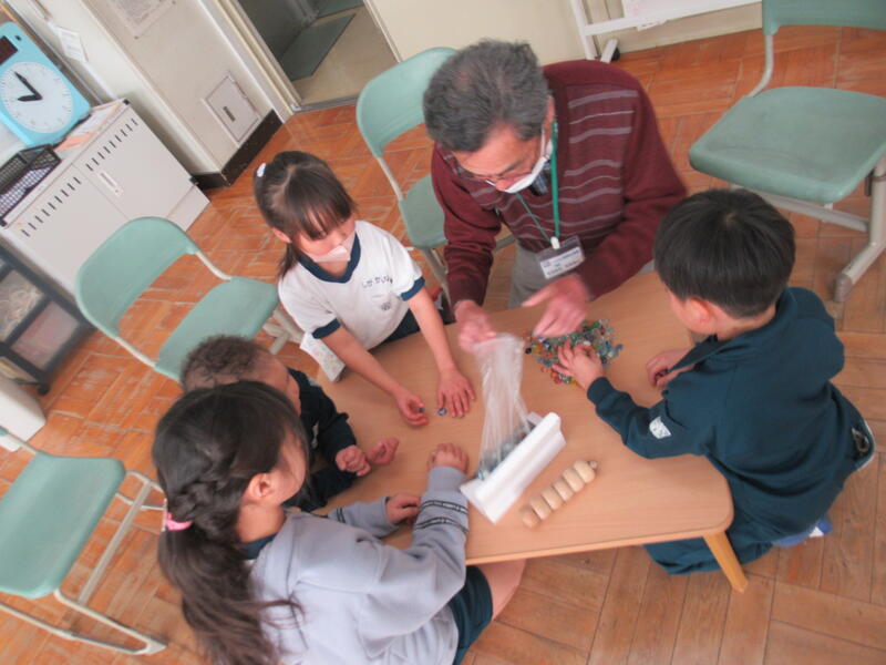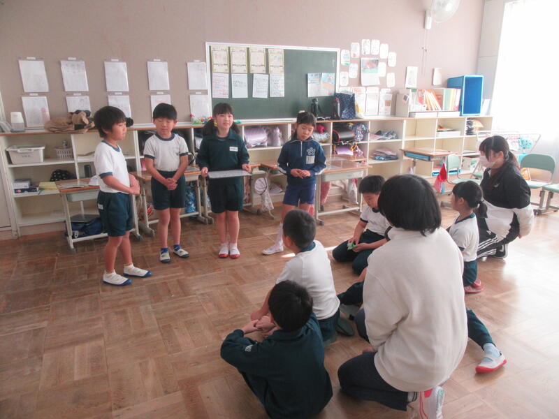 あっという間に時間が過ぎてしまいました。終わりの会では、毎回授業でお世話になっている郷田さんが、子供たち一人一人に、サプライズで折り紙のプレゼントをくださいました。手作りの折り紙で作った入れ物と、中には小さな鶴が数羽入っていました!1年生は大喜びでプレゼントを大事に眺めていました。