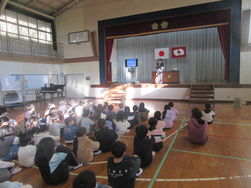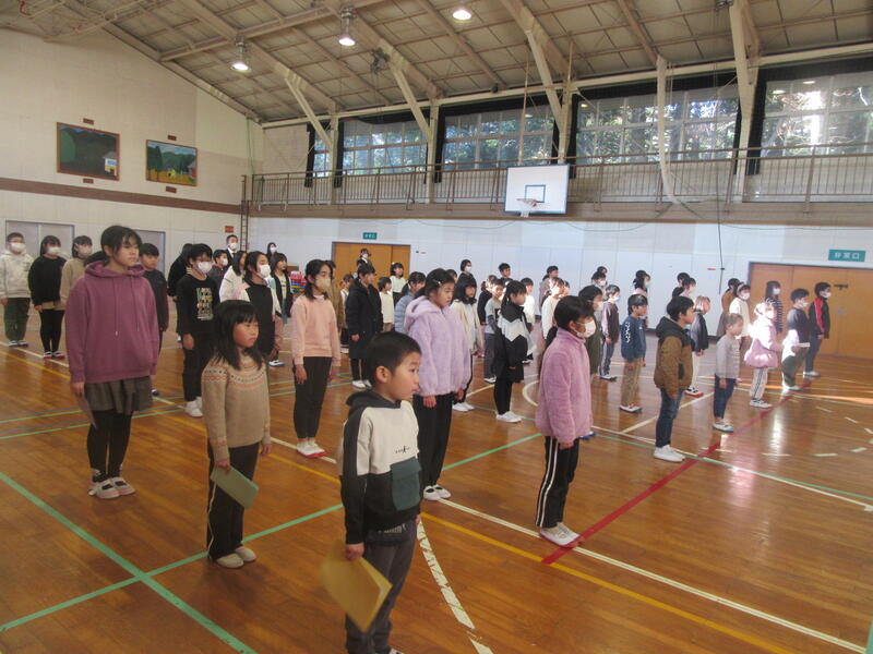 校長先生からは「チャレンジした2学期!」と題してお話がありました。やり遂げた5・6年の宿泊学習。みんなで作り上げる喜びを学んだものづくり体験。みんなと一緒に御祝できた高野小150周年記念式典。4年ぶりに開催でき学習の成果を表現できた学習発表会。高い目標をたて全校で頑張った持久走記録会。その頑張りを3学期につなげてほしいとお話しになりました。
