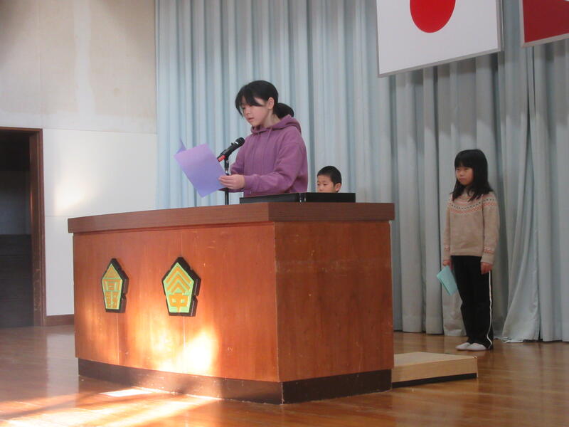 次に、「2学期の振り返りや冬休みに頑張りたいこと」を代表児童が発表しました。