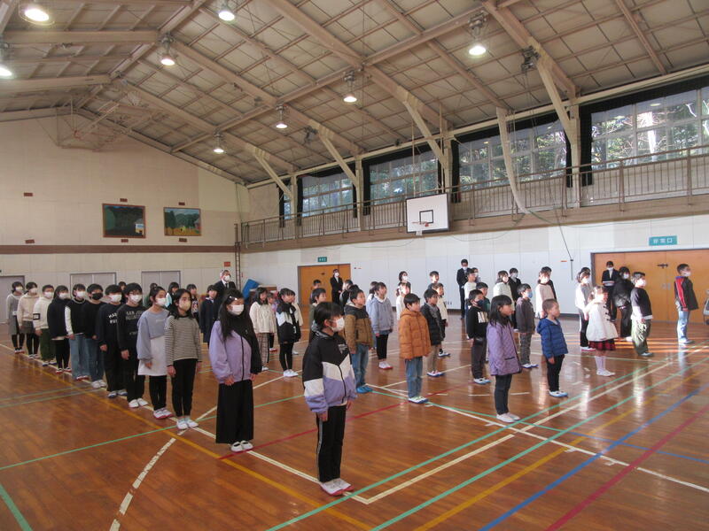 新年が明け、楽しい冬休みが終わりました。今朝はとても冷え込みましたが、どの子も元気に「おはようございます!」とあいさつを返してくれました。さて、本日は第3学期始業式が行われました。高野っ子は新年の新たな気持ちで式に臨んでいました。久しぶりの整列もびしっと決まっていますね!