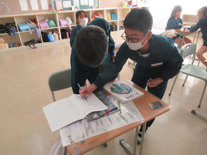 5年生は総合で、スチューデントシティの事前学習をしていました。画像で自分達が働く場所を確認していました。「これは薬局かな?」「これは銀行だと思う。」会場の雰囲気に期待がふくらんで、ますます楽しみな様子でした。