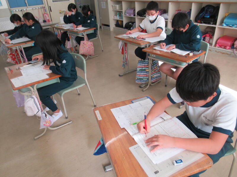 6年生は算数科で、考える力を伸ばすために活用力を高める問題にチャレンジしていました。なかなか一筋縄ではいかない問題に粘り強く取り組んでいました。