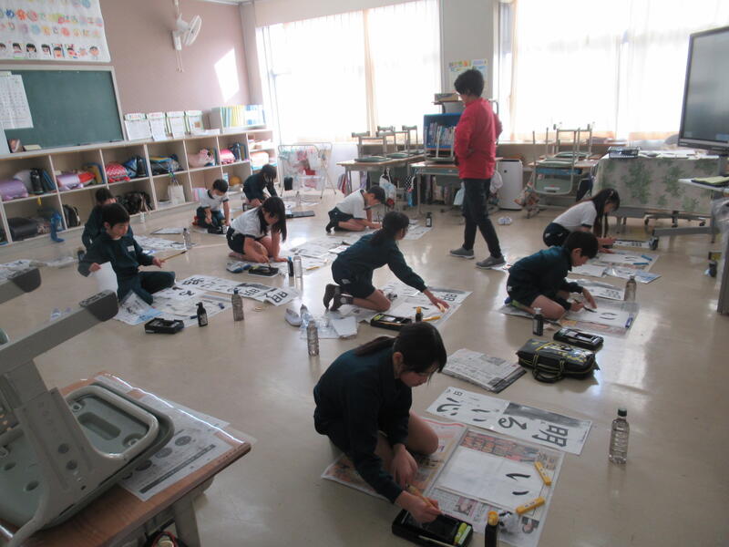 高野小学校では1月10日より校内書き初め週間となっております。各学年で時間を決めて書き初めに挑戦しています。本日は、3、4、5年生が書き初めに取り組んでいました。
