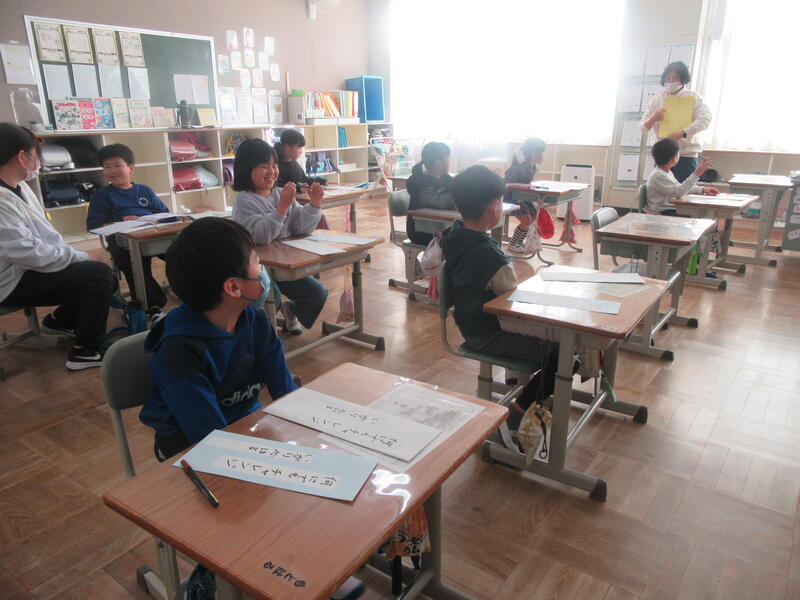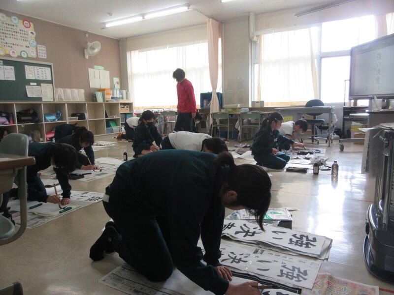 2年生は国語科で、書き初めの練習をしていました。2年生は「何にでもチャレンジ」という文字を書いていました。カタカナの文字バランスは難しいですが、集中して書いていました。