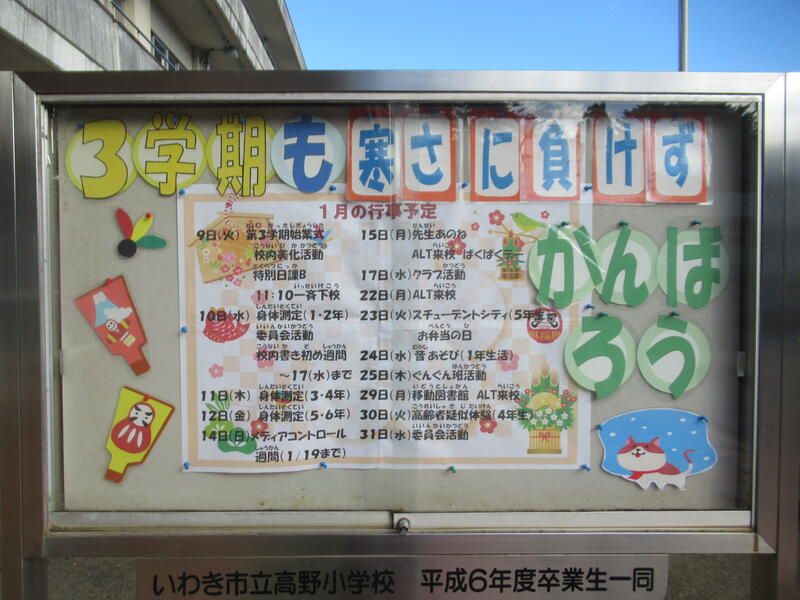 皆さまにとってよい1年になりますよう高野小学校職員一同心よりお祈り申しあげます。