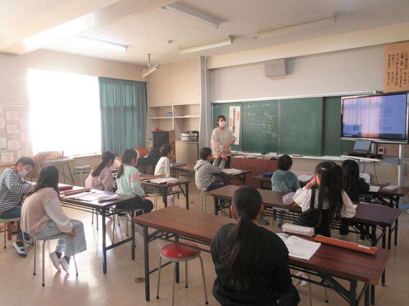 6年生は外国語科で、ALTの先生と学習していました。小学校の思い出について英語で会話をしていました。ケリー先生がPCで自作のゲームを作ってくれました!すごいですね。大いに楽しみながら、復習ができました。