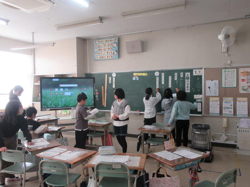 4年生は学級活動で、学級会を開いていました。本日で9回目の学級会だそうです。どんな係があったら学校生活が楽しくなるか、自分の考えを伝えていました。