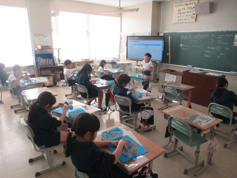 3年生は図画工作科で、粘土を使って自分の考えた町づくりをしていました。お店屋さんや、動物園、楽しそうな遊具……どんな町になるのでしょうか。