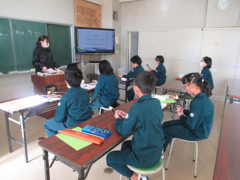 4年生は音楽科で、リコーダーの練習をしていました。ドやレの低い音の出し方を教わりました。優しく息を吹き込むのがポイントだそうです。上手に出せるようになるかな?