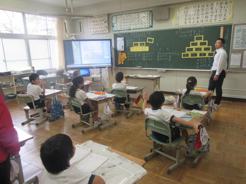 12月12日(火)3校時に1年生教室で研究授業が行われました。算数科の「けいさんピラミッド」をみんなで解いていきます。担任の先生が、「ピラミッドの謎を解いていくよ!いくぞ!」とみんなに声をかけます。1年生のみなさんもノリノリです。どのようなけいさんピラミッドになっているのでしょうか。