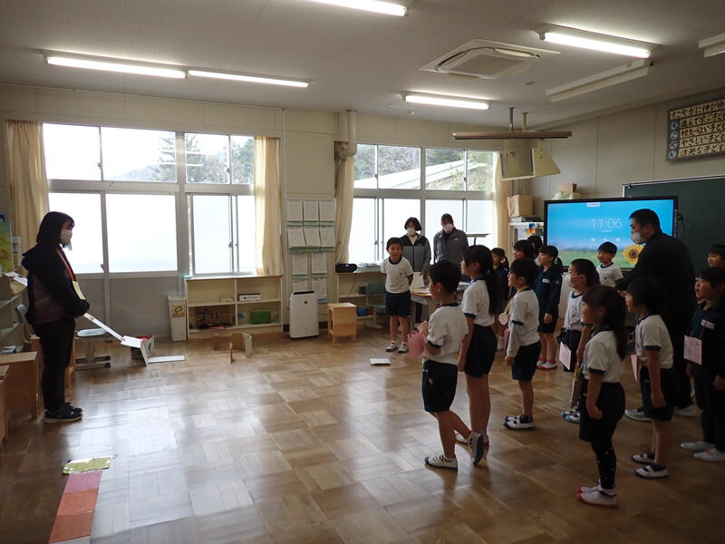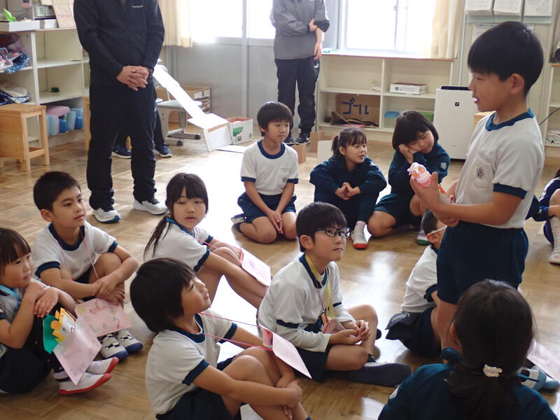 会が始まりました。2年生が堂々と会の進行をしていきます。それぞれ作ったおもちゃの紹介がありました。「こんなところを工夫しました!」自分の自慢のおもちゃのよさも1年生に伝えることができていました。