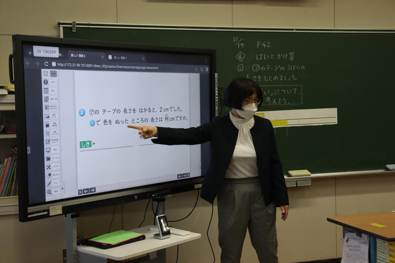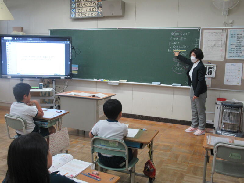 12月15日(金)2校時に算数科の研究授業を行いました。本日は「倍とかけ算」の授業でした。始めに前時までのかけ算の復習をしました。九九を一生懸命頑張っている2年生ですから、かけ算はばっちりのようです。本日はどんなことを学べるのでしょうか。