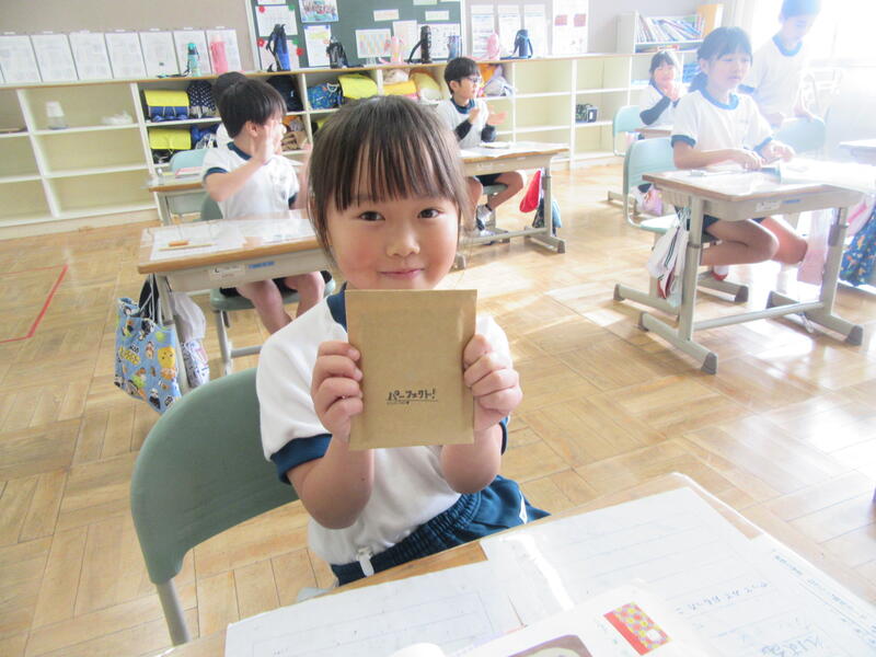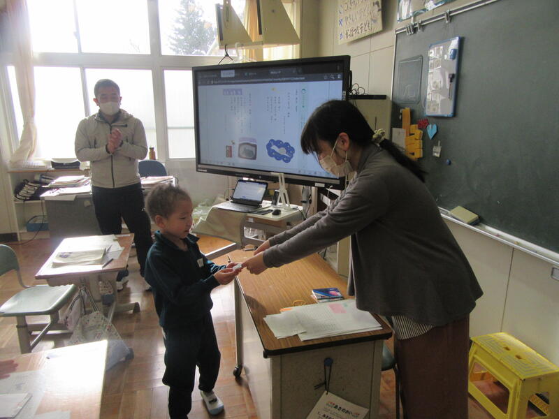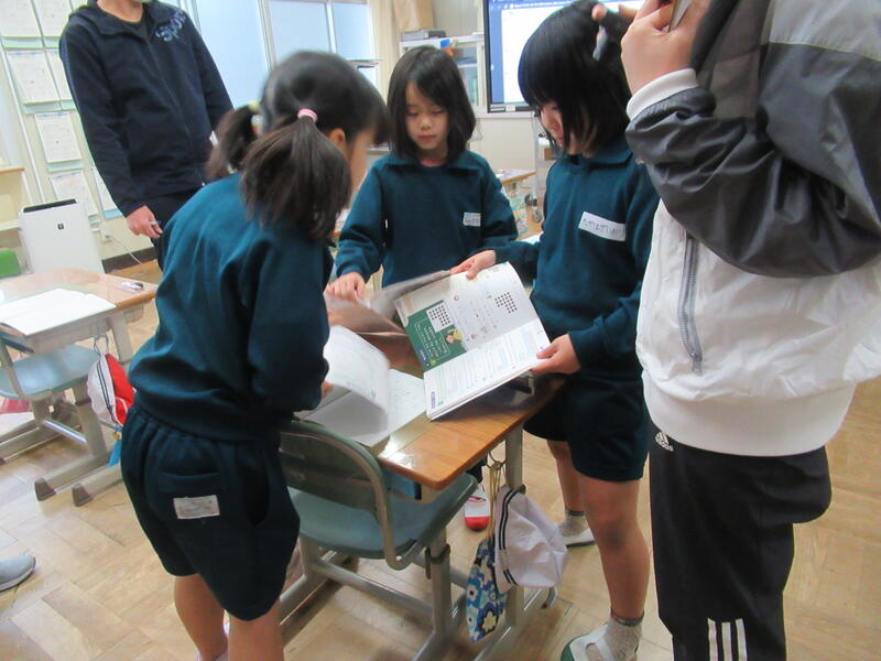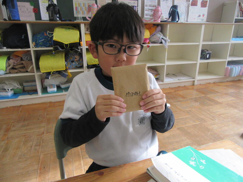 また、本日は大休憩や昼休みに図書の先生が各教室に来てくださいました。図書の先生が企画した「分類ビンゴ」で、多くのジャンルの本を読んだ児童にプレゼントをくださいました。ブックカバーを利用した世界で一つだけのメモ帳です。子供達は大変喜んでいました。