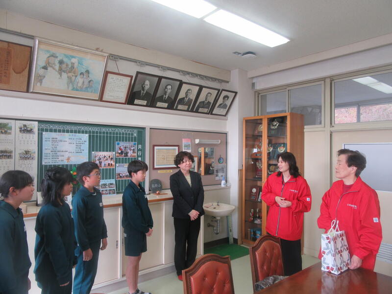 6年生は大休憩時に「赤い羽根共同募金贈呈式」に参加しました。式には社会福祉法人 いわき市社会福祉協議会 内郷地区協議会 会長 遠藤様 主事兼地域福祉コーディネーター 竹内様にお越しいただきました。高野小学校では6年生が中心となって11月14日から11月23日まで、募金を放送で呼びかけたり各学級を回ったりしました。今回高野小学校では『10,084円』もの募金が集まりました。協力してくださった皆さんに感謝しながら、6年生の代表者が遠藤様に渡しました。竹内様は「ありがとうございます。この頂いた募金を地域の困った人のために使わせて頂きます。」とおっしゃっていました。
