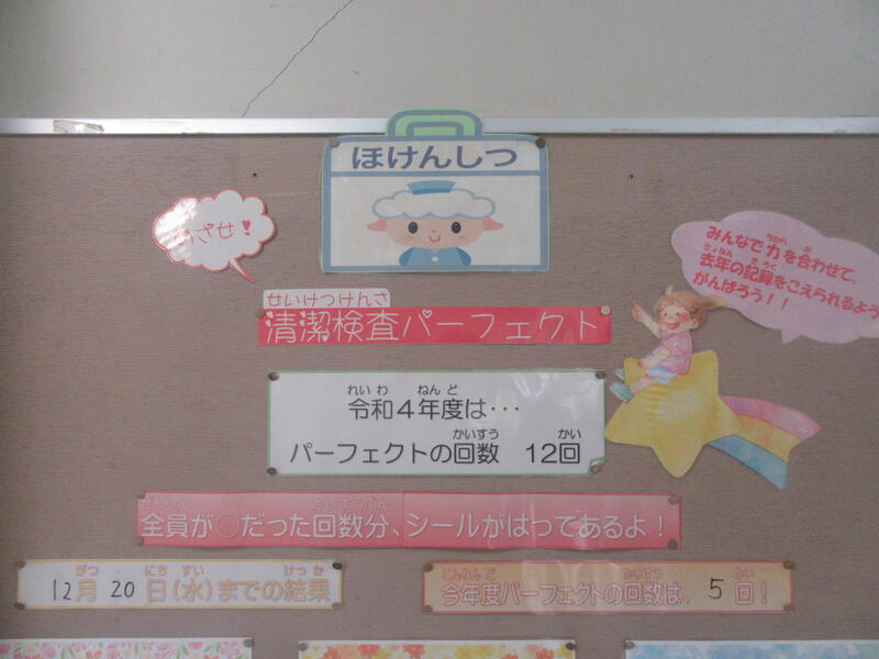 6年生の保健委員さんは「今年は5回しかパーフェクトになりませんでした。来年は、昨年度の12回をこえられるように頑張りたいです。」と話しました。1~3月は10回ほどの清潔検査があります。全てパーフェクトにすれば、道は開けるかもしれません。高野っ子力を合わせて取り組んでいきましょう!