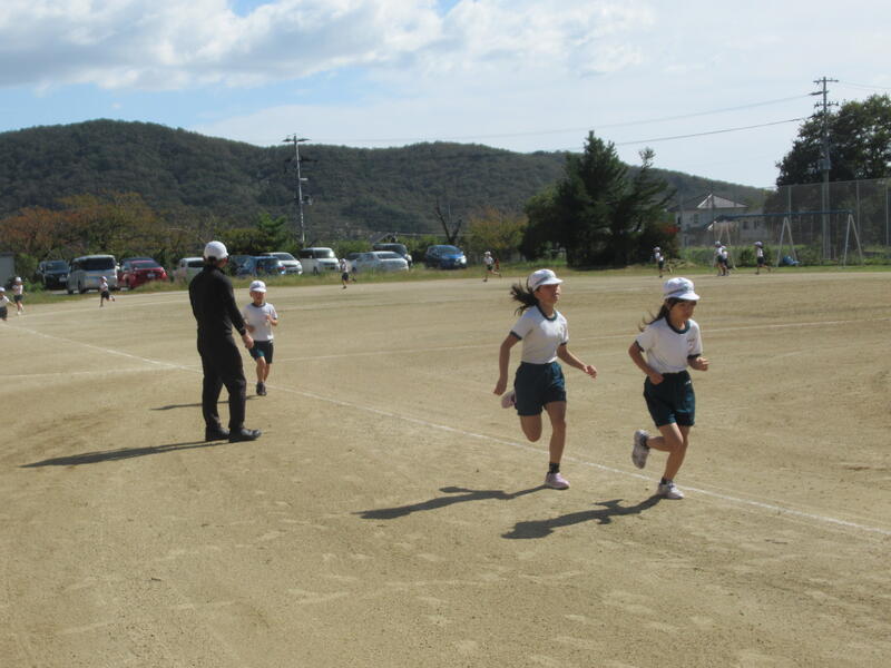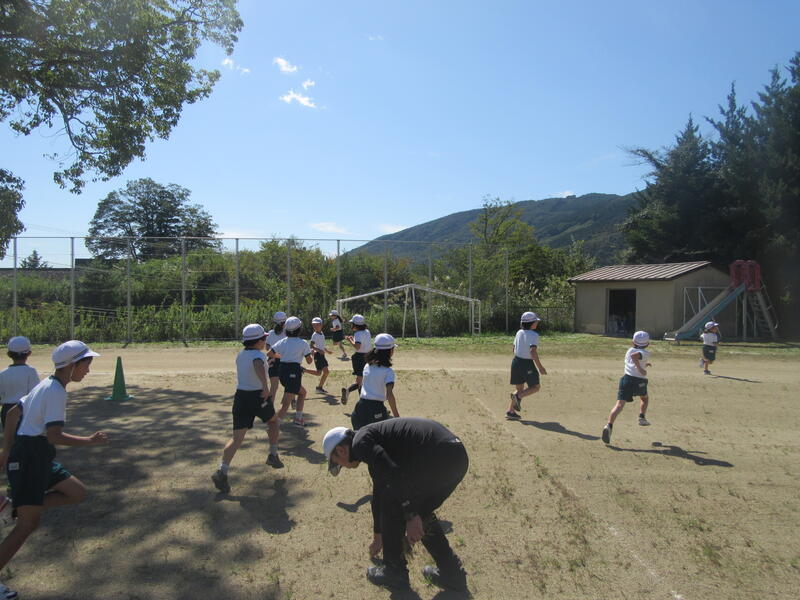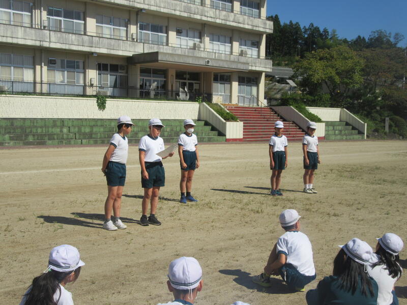 秋晴れの空の下、全校で校庭を走り回りました。すがすがしい汗をみんなで流しました。体育委員さんのおかげで、どの子も楽しんで思い切り運動ができました。