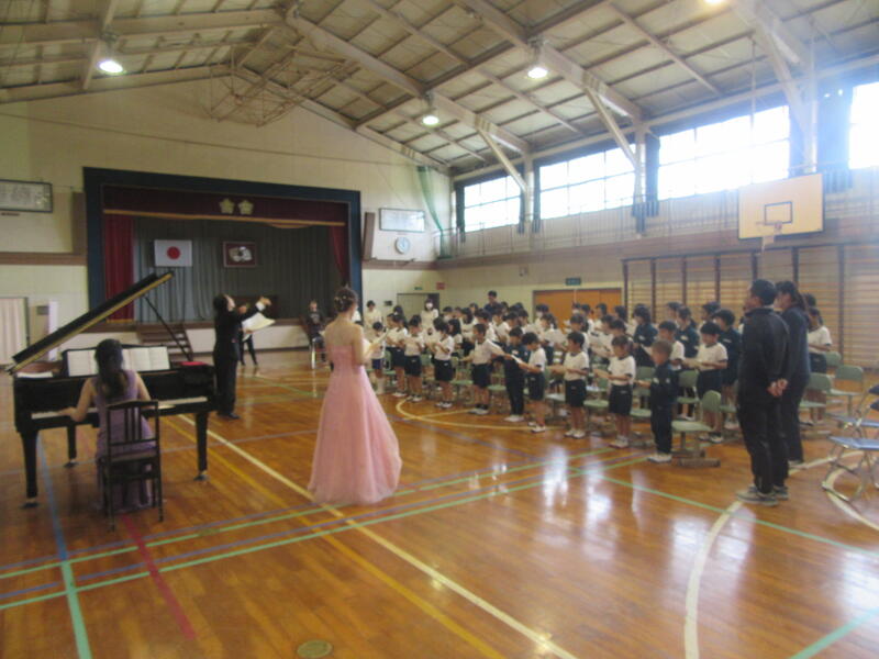演奏会が終わって、子供たちの感想発表がありました。たくさんの子供たちが手を上げて、感じたことを伝えようとしていました。「声がとってもきれいでした。」「小さな歌声から大きな歌声になったとき、響き渡る歌声に鳥肌が立つぐらい感動しました。」「ピアノの演奏がすごかったです。」「夢の世界にいるようでした。」などなど……お子さんの感想をおうちでもぜひ聞いてみてください。