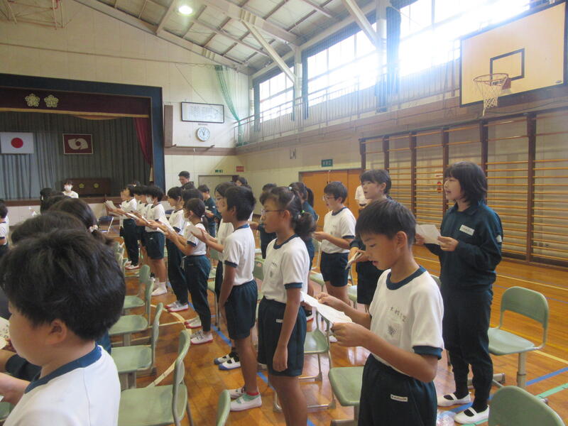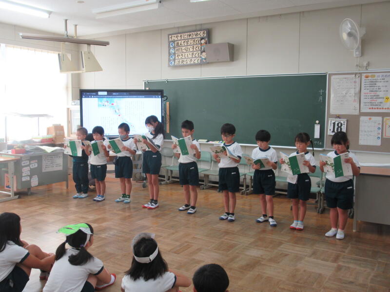 1年生全員が、自分の出番をよく分かって、丁寧に音読発表ができました。1文字1文字読むのが大変だった1年生も、すらすらと読んで成長を感じました。お家での毎日の音読練習の積み重ねの成果ですね。