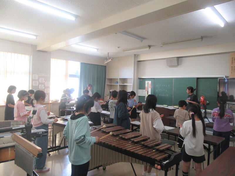 3・4年生は音楽科で合奏を行っていました。木琴や鉄琴などの様々な学期の音を合わせてリズミカルに演奏していました。何の曲を演奏しているかは・・・お楽しみにしていてください。